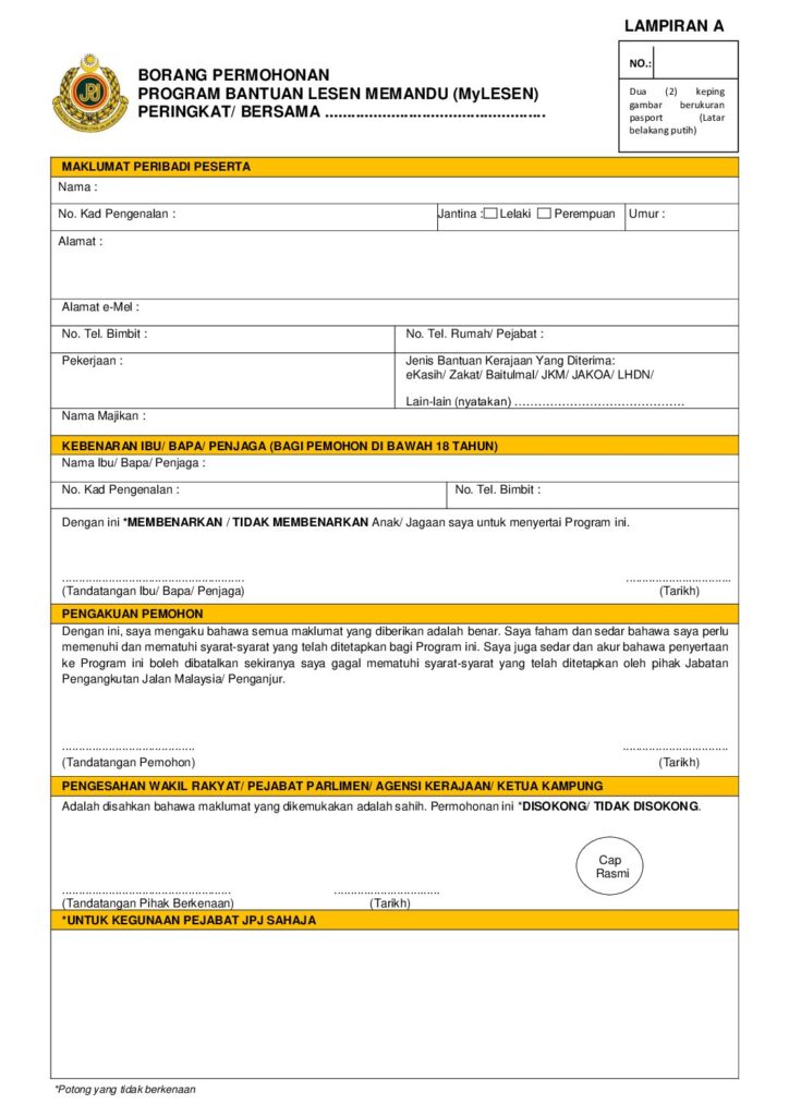 Sуаrаt Permohonan Bantuan Lesen Percuma 2024